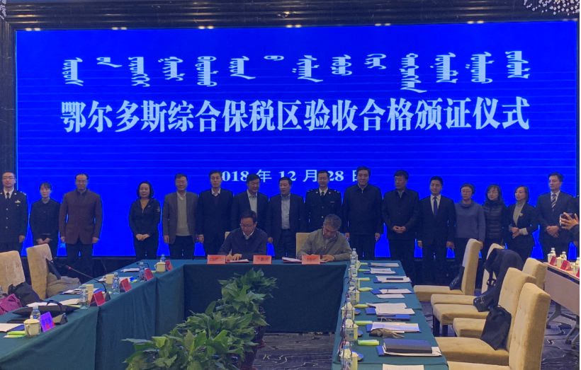 時(shí)間追溯到2012年底,鄂爾多斯啟動(dòng)綜合保稅區(qū)申建工作, 2017年2月14日國(guó)務(wù)院正式同意批復(fù)設(shè)立,經(jīng)過一年多的實(shí)施建設(shè),2018年12月6日一次性通過內(nèi)蒙古自治區(qū)的聯(lián)合預(yù)驗(yàn)收,緊接著在12月28日一次性順利通過由海關(guān)總署牽頭,商務(wù)部、國(guó)家發(fā)展改革委、財(cái)政部等國(guó)家八部委組成的聯(lián)合驗(yàn)收組正式驗(yàn)收。